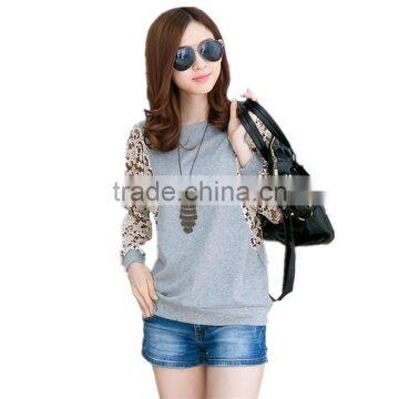 Korean style slim round neck long batwing sleeve women lace stitching plus size