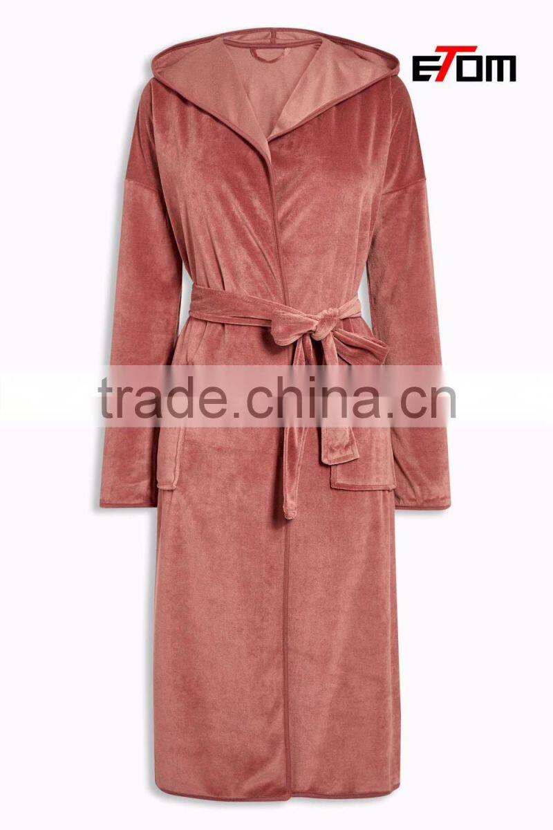 Customize Ladies Luxury Coral Velvet Long Robe, Long Sleeve Kimono Robe 2017012