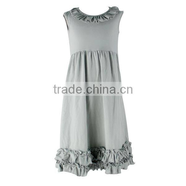 Wholesale Boutique Sleeveless Baby Dresses Girls Cotton Frock Designs Kids Solid Gray Gown