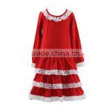 Wholesale Red Ruffle Lace Dress Girls Frock Cotton Dress Children Boutique Christmas Dress