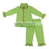 Wholesale 100% Cotton Ruffle Pajamas Girls Polka Dot Pajamas Green Children Christmas Pajamas