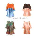 Hot Sale Halloween Orange Strip Long Sleeve Ruffle Dress Girls Smoking Dress Design Kids Cotton Frocks Design