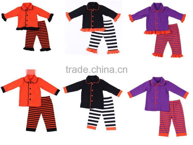 Children pyjamas 100% cotton toddler girls ruffle stripe kids Halloween pajamas |