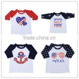 Ptriotic Baby Girls Boutique Clothes Wholesale Kids Cotton t Shirt 4th of July Children Raglan Shirt Design
