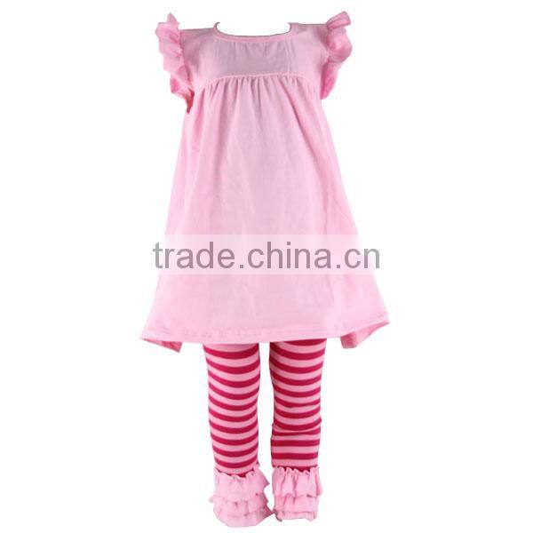 2017 Spring and summer hot sale kids clothes pink icing ruffle outfits solid dress sets baby wear children clothes |