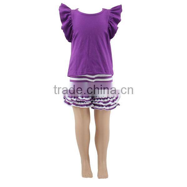 2017 summer hot sale kids clothes purple icing ruffle outfits solid tops sets baby wear children clothes |