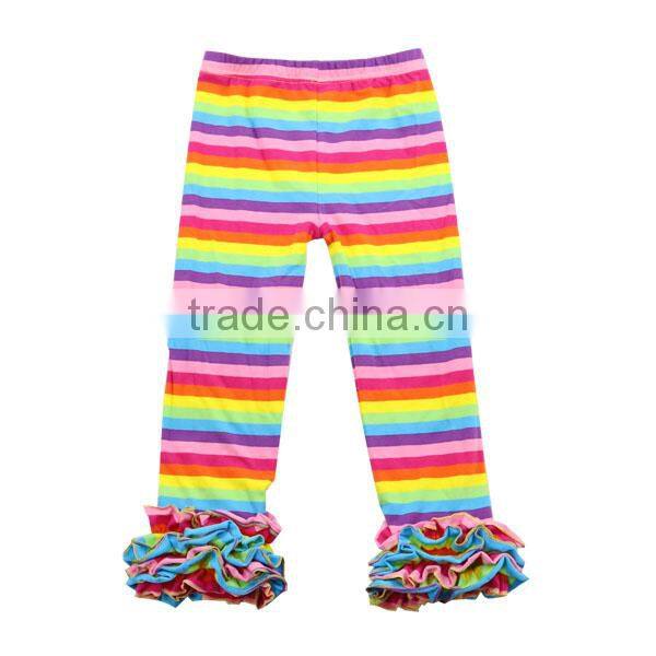 2017 New Design Rainbow Strip Icing Cute Baby Girls Pants Readymade Garments Sequin Pants for Kids Girl Leggings