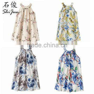 ShiJ Kids Clothes 2017 100% Linen Print Girls Dresses For Teenage