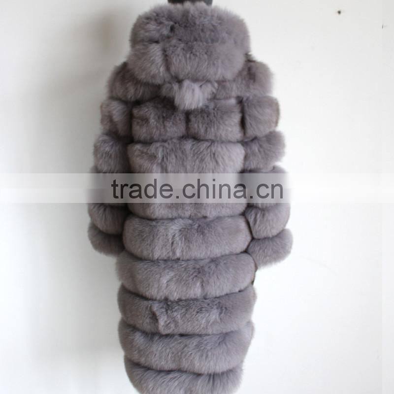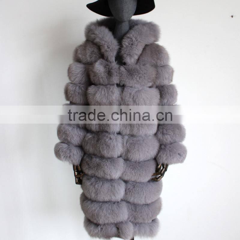 Myfur Wholesale Retail Ladies Fashion Whole Hide Real Natural Color Fox Fur Long Coat With Fur Hooded