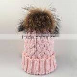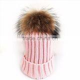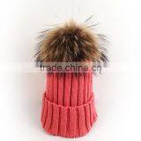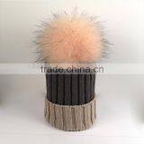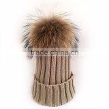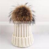 Myfur Adults Wholesale Winter Knitting Hat With Real Raccoon Fur Pom Pom