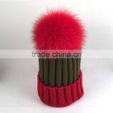 Myfur Adults Wholesale Winter Knitting Hat With Real Raccoon Fur Pom Pom
