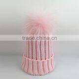 Myfur Cute Peach Color Warm Ribbed Knitting Hat With Natural Raccoon Fur Ball