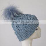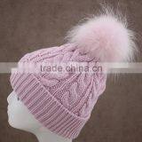 Myfur 2016 Newest Girls Winter Knitted Wool Hats With Fur Poms
