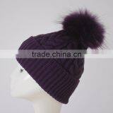 Myfur High Quality Wool Cable Knit Beanie Hat Pom Pom Custom Fur Hats