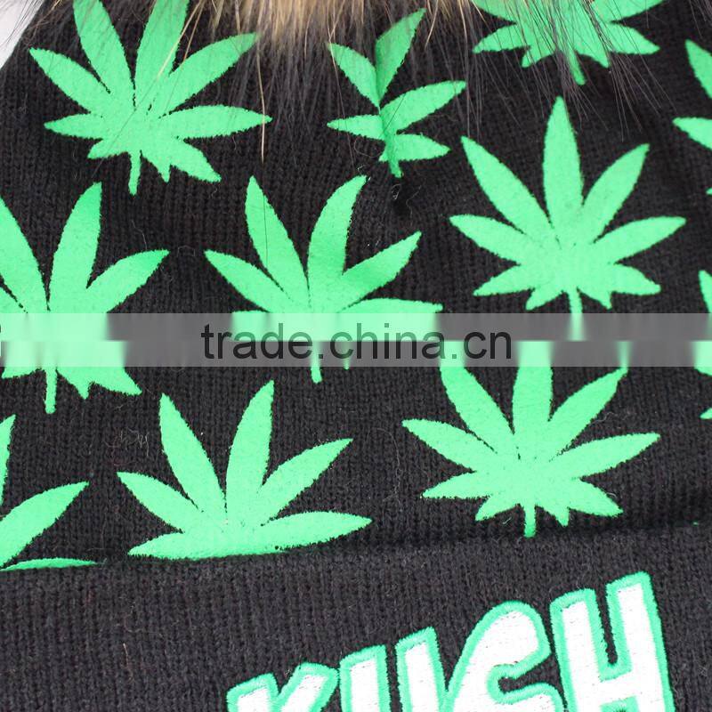 Myfur New Fashion Printing Beanie Winter Hat Type and Knitted Pompom Beanies