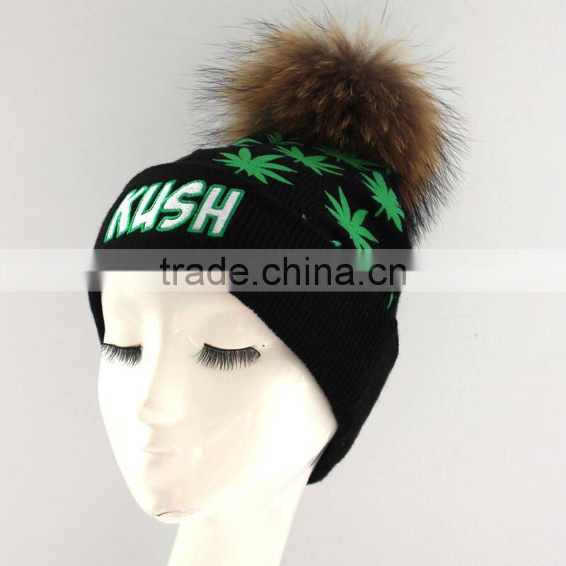 Myfur 2017 Wool Adults Style Letter Printing Pompom Hat With Real Fur Pom Pom