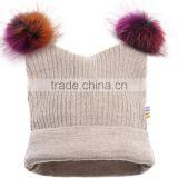 Myfur Wholesale Customized Woolen Yarn Knitted Beanies With Real Fur Bobble Top