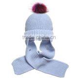 Myfur Newest Design Baby Cotton Hat and Scarf With Real Raccoon Fur Pom Pom