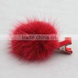 Myfur Cute Red Color Real Mink Fur Pom Pom Hairpin For Fashion Girls