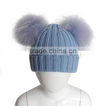 Myfur Wholesale New Designed Knitted Beanie with Fur Pom Pom for Kid and Baby