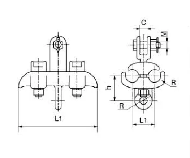 The suspension angle of supension clamps is not less than 25º, the radius of curvature is not less than the dia of installed leads by 8, and the precentage of the grip on different kinds of leads to the capabiility of snap show in the following table.