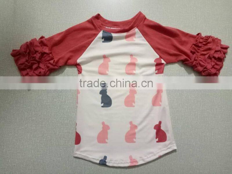 Wholesale Baby Clothes Ruffle Raglan Baby Icing Ruffle Top With Bunny Printed