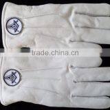 Masonic Craft Regalia White Leather Square & Compass Emblem Glove