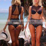 M740 D.Y Fashion 2016 Ladies Black Lace Split Bikini Swimwear Beachwear