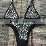 M859 Runwaylover 2016 Sexy Black Metallic Crystal Diamond Bikini Swimwear