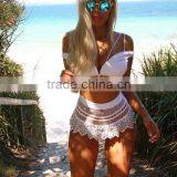 M742 D.Y Fashion 2016 Ladies White Lace Split Bikini Swimwear Beachwear