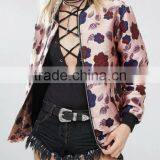Runwaylover EY1060C Europe Style Ladies Autumn Wear Flower Printed Baseball Jackets
