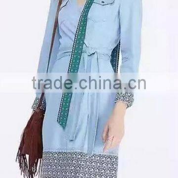 Runwaylover EY1016C Lady fashion garment manufacturer long denim trench coat for women: