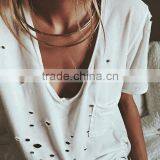 Runwaylover 5218 Europea Hot Sale Ripped Sexy Hole White T-shirt