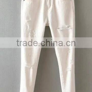 Runwaylover EY0634P 2017 Trendy Sexy Women's Blue Distroyed Holes Ripped Skinny Jeans Denim Pants