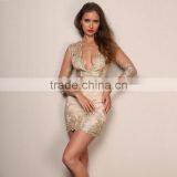 Runwaylover 046 Europe Style 2017 Ladies Deep V-Neck Fashion Embroidery Bandage Dress