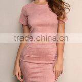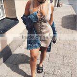 Runwaylover 041 Hot Sale 2017 Ladies Fashion Off-Shoulder Halter Suede Casual Dress