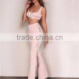 Runwaylover 057 Hot Sale 2017 Ladies Sexy Crop Top And Casual Pant Set