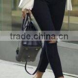 Runwaylover EY0621P Custom Newest Fashion Stretch White Holes Denim Jeans Women Negotiate Price