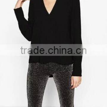 Runwaylover EY2376B Ladies 2017 Deep V-Neck Sexy Pure Color Blouse