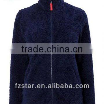 Women's Navy Fleece Jacket Full Zip PQ219:1.two side brush&anti-pilling polyester fabric