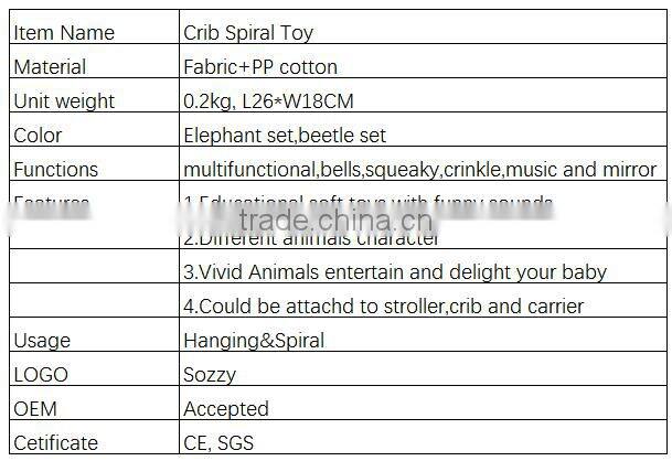 Home > Products > Sozzy brand products > Multifunctional Hanging Animal Ornament/Baby Spiral Toy/plush Bed Winding Toy