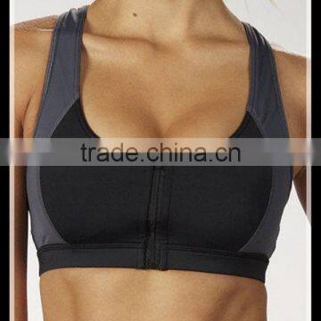 Wholesale Black Gray Zip-Front women Sports Bra material we have cotton/polyester,different material different price,we accept OEM/Customized order.