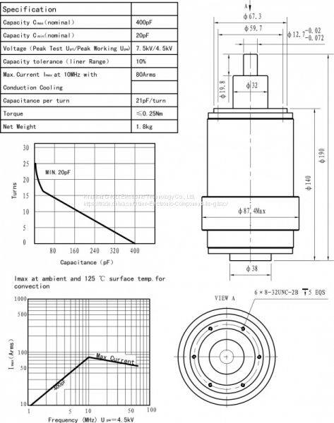 The CKTB400/5.5/80 capacitor use vacuum as dielectric with ceramic envelope ,which have the following features:High voltage , Small size , High Q value, Stabilization capability , High reliability ,Low price.