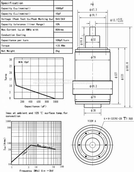 CKTB1000/10/80(Ⅰ) Variable Capacitors Use vacuum as dielectric with ceramic envelope, which have the following features:High voltage, Small size, High Q value, Stabilization capability, High reliability, Low price.