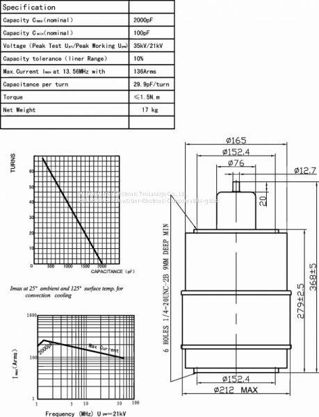 The CKTB2000/25/220 high voltage ceramic capacitors Use vacuum as dielectric with ceramic envelope, which have the following features:High voltage, Small size, High Q value, Stabilization capability, High reliability, Low price.