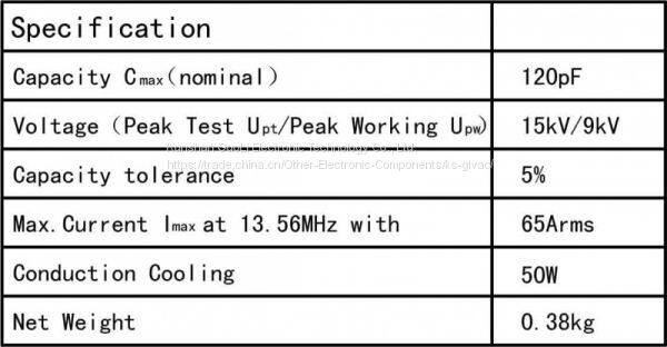 The CKT120/10/65 capacitor use vacuum as dielectric with ceramic envelope ,which have the following features:High voltage , Small size , High Q value, Stabilization capability , High reliability ,Low price.