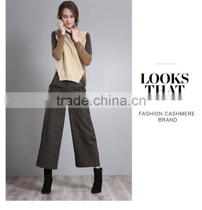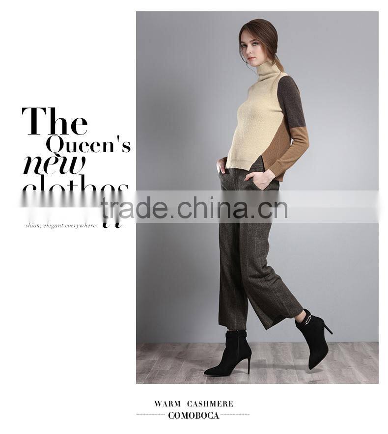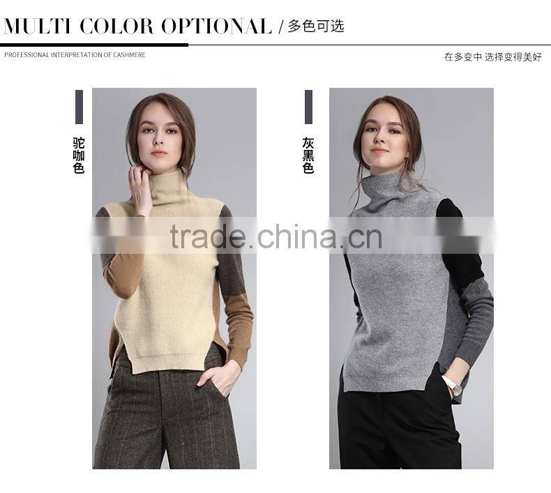 OEM Factory Price Women Turtleneck Color Block Knit Cashmere Sweater