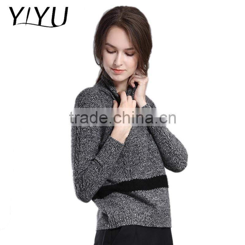 American Winter Autumn Women Turtleneck Color Block Cashmere Pullover Sweater