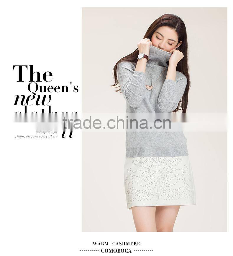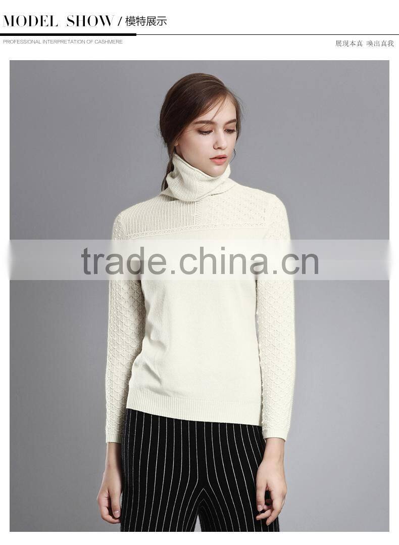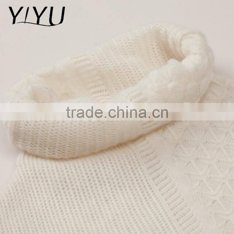 European Casual Style Women Soft White Rollneck Cashmere Knit Sweater