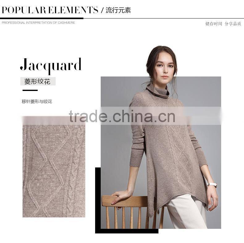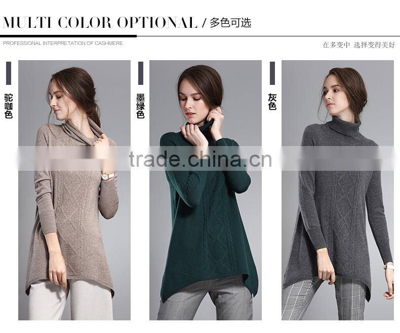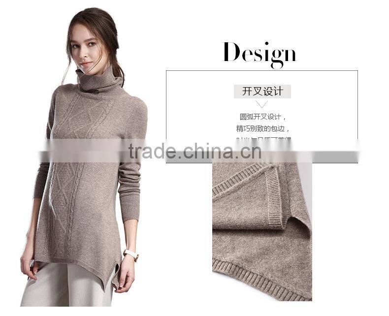 Custom Cashmere Sweater Lady Turtleneck Long Pattern Cable Knit Pullover